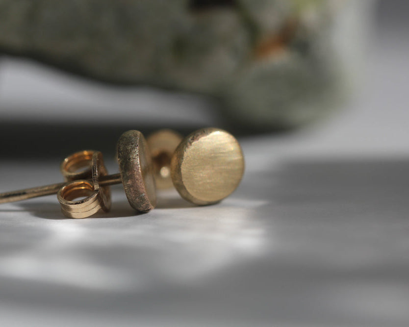 So many of you have asked for something other than rings made from our Good Gold, alluvial New Zealand Gold. We played around with bangles and hoop earrings, but came back to our values, simple, elegant, ethical. Each earring is made from a single casting grain, 1 gram of solid 9 karat gold that Siggy hammers and files so that is both organic looking but incredibly refined.